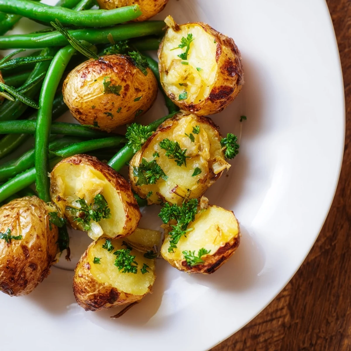 This dish combines halved baby potatoes roasted until crisp with fresh green beans, all infused with aromatic garlic, rosemary, thyme, and parsley. Olive oil coats the vegetables, enhancing their flavors as they bake at a high temperature, creating a satisfying texture contrast. The addition of fresh herbs brightens the natural earthiness of the potatoes and green beans. Ready within 45 minutes, it serves as a vibrant, wholesome side ideal for complementing various meals and accommodating vegetarian and gluten-free diets.
